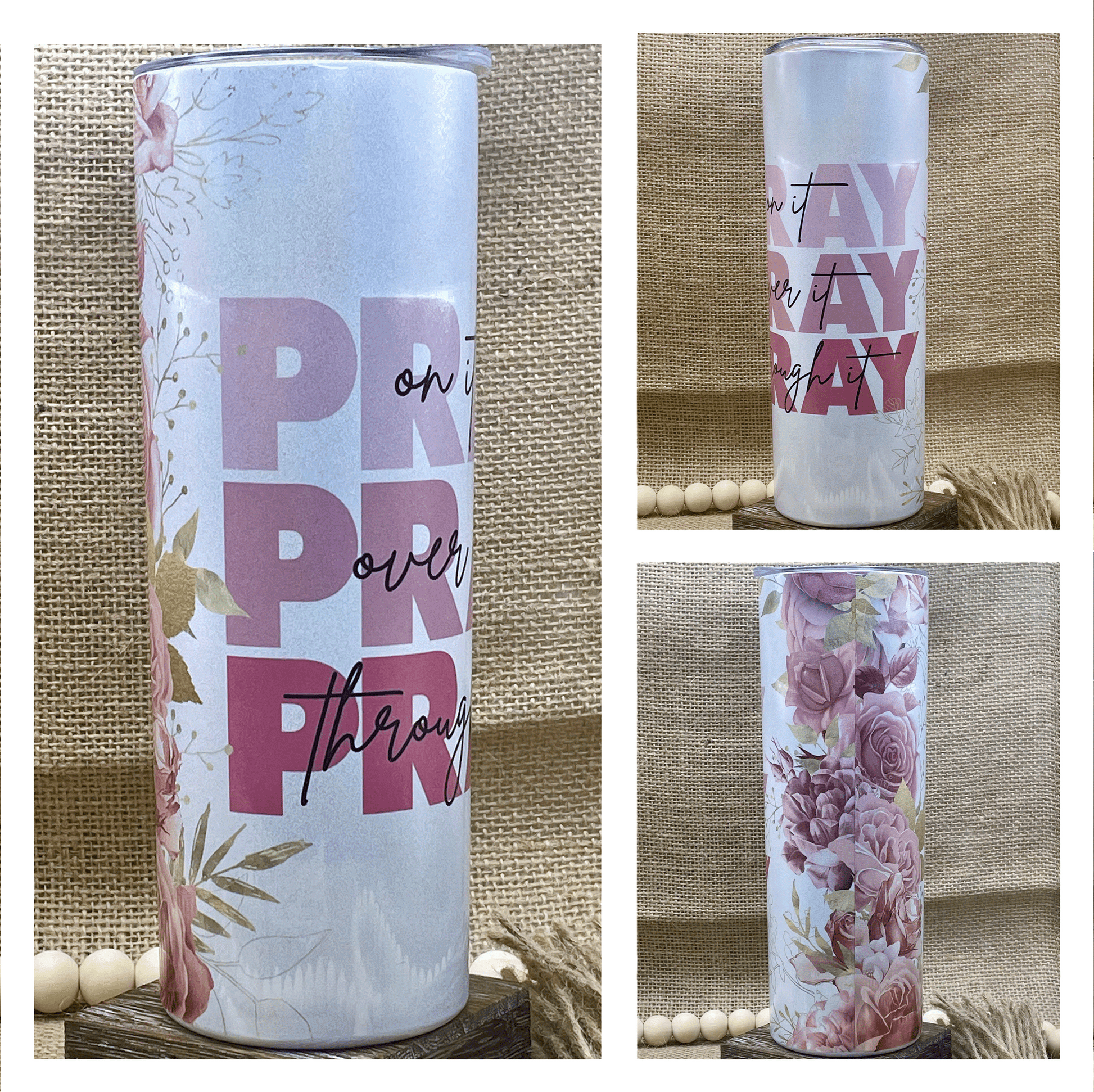 Pray On it, Over It, Through It 20oz Shimmer Tumbler