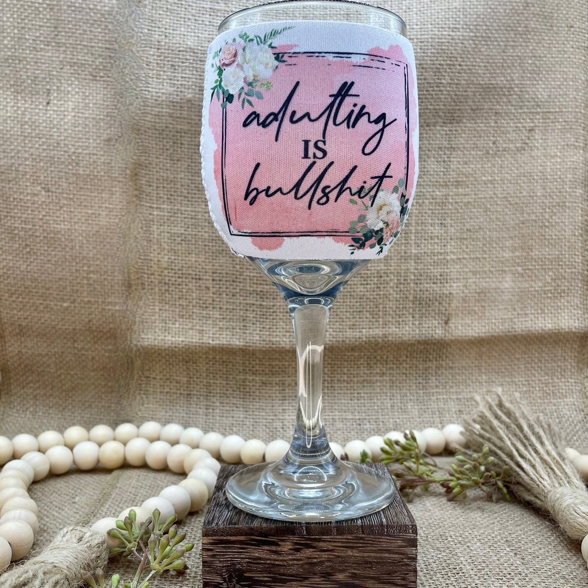 Adulting is Bullshit - Floral - Wine Glass Sleeve