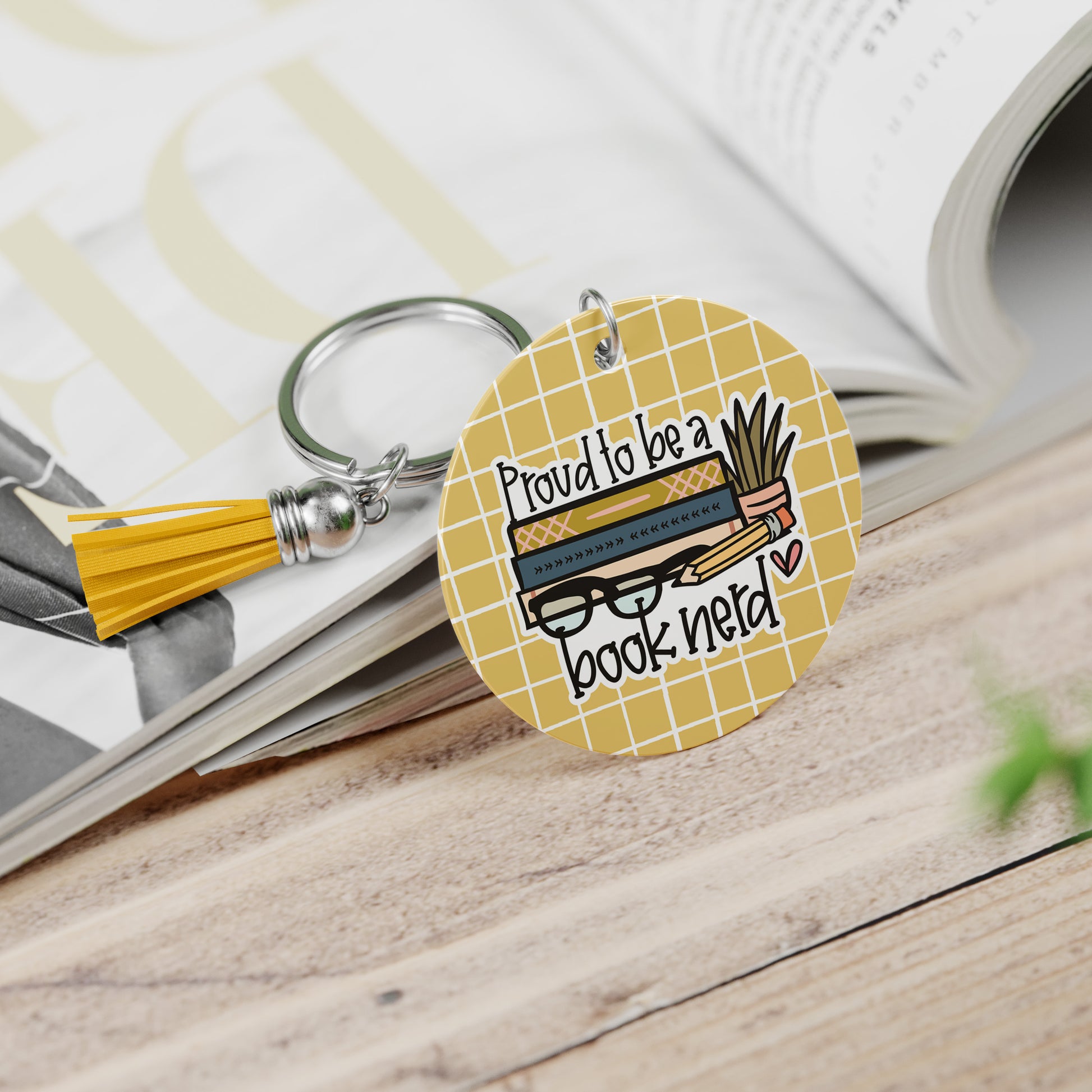 Round, lightweight keychain is approximately 2 inches in diameter.